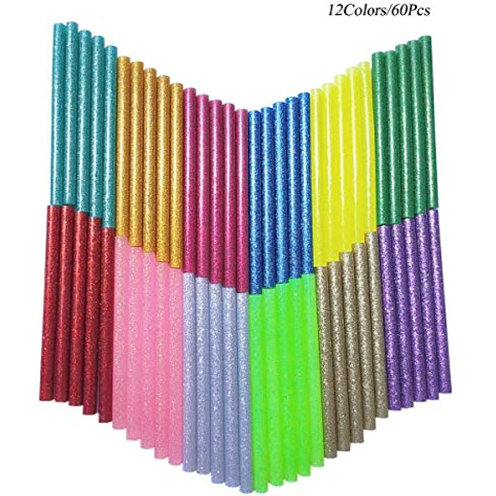 Glitter Hot Glue Sticks 60pcs 12 Colors Melt Gun Mini Colored Adhesive For Diy Ebay